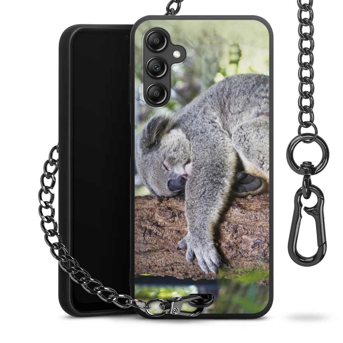 • Mattschwarze Handyhülle mit Metallkette