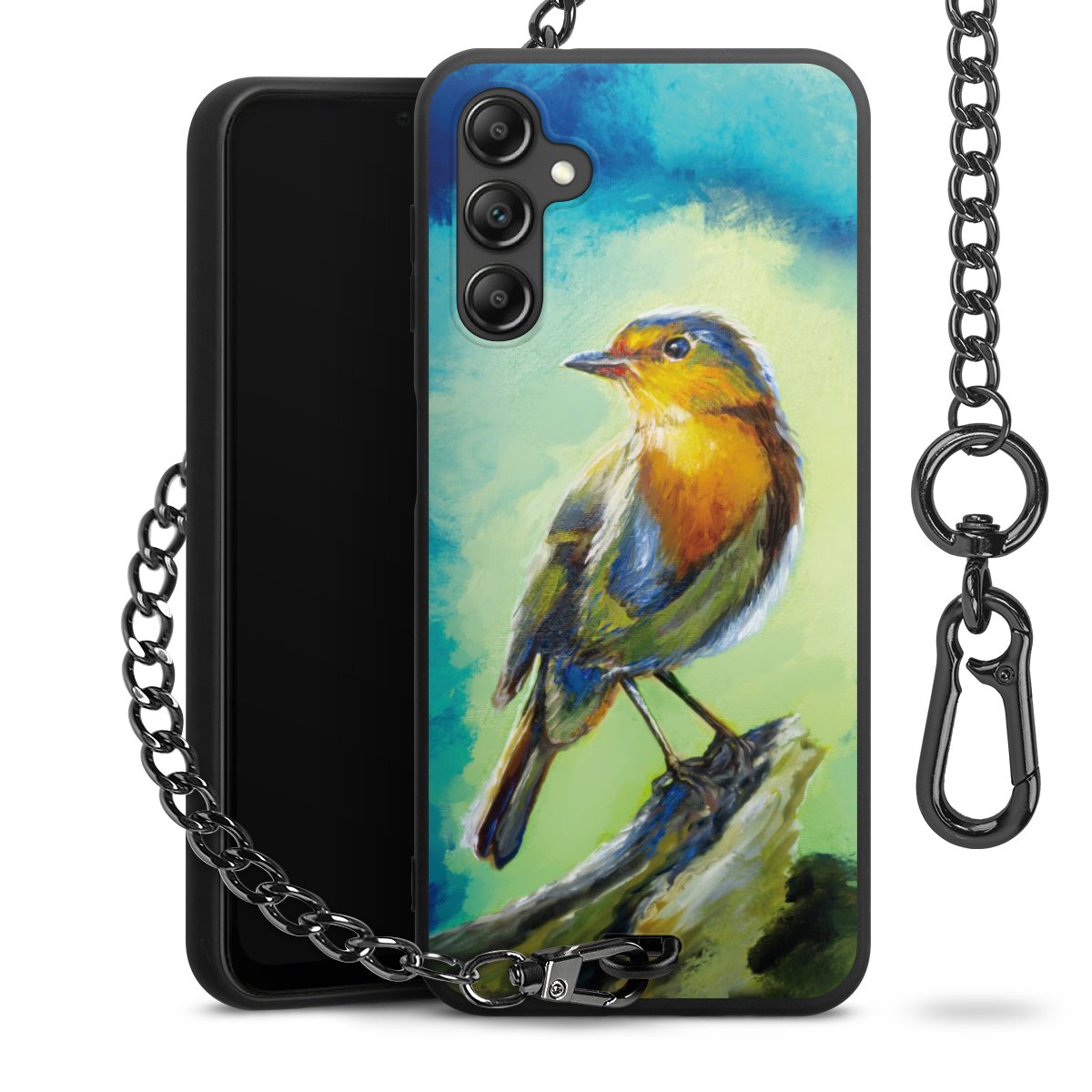 • Mattschwarze Handyhülle mit Metallkette