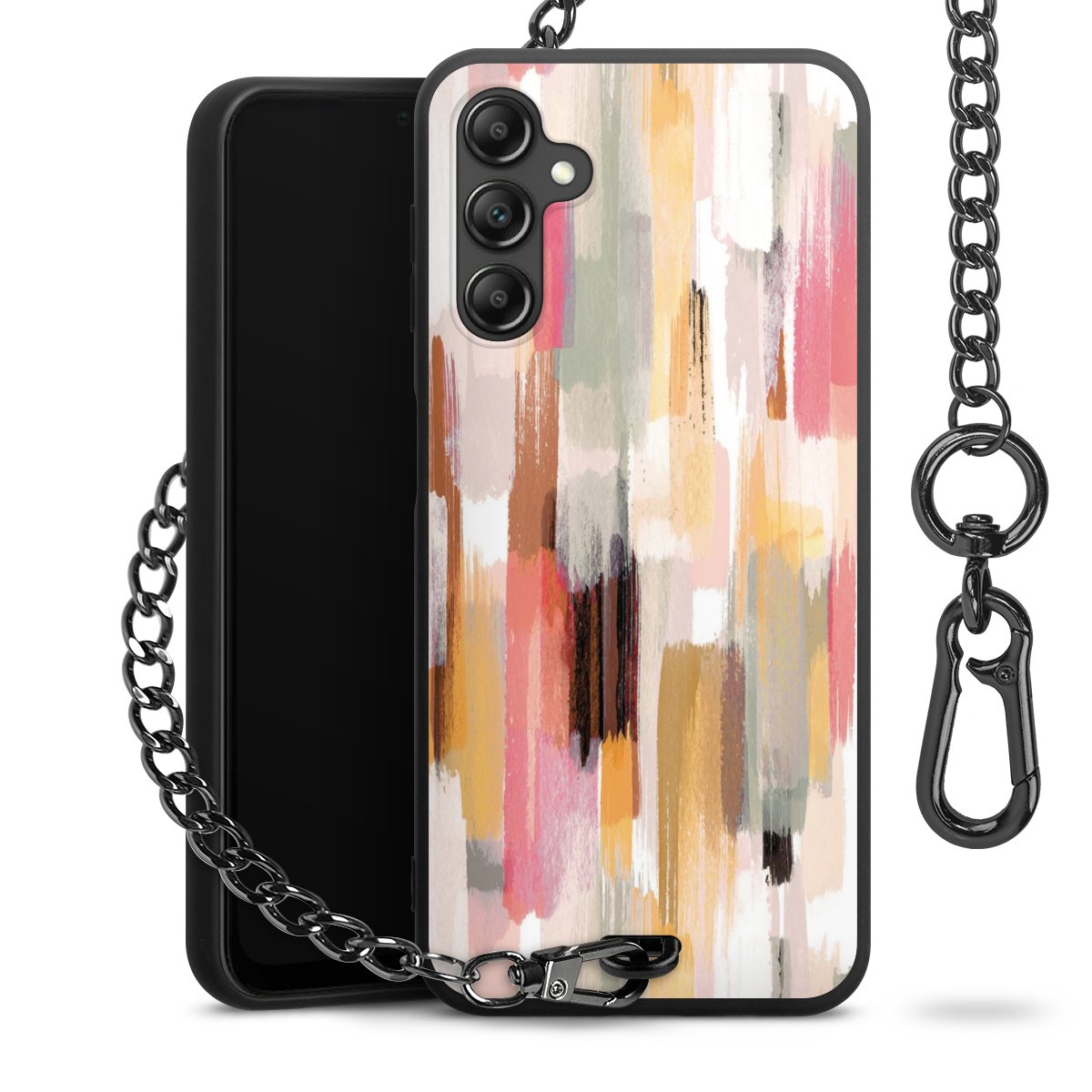 • Mattschwarze Handyhülle mit Metallkette