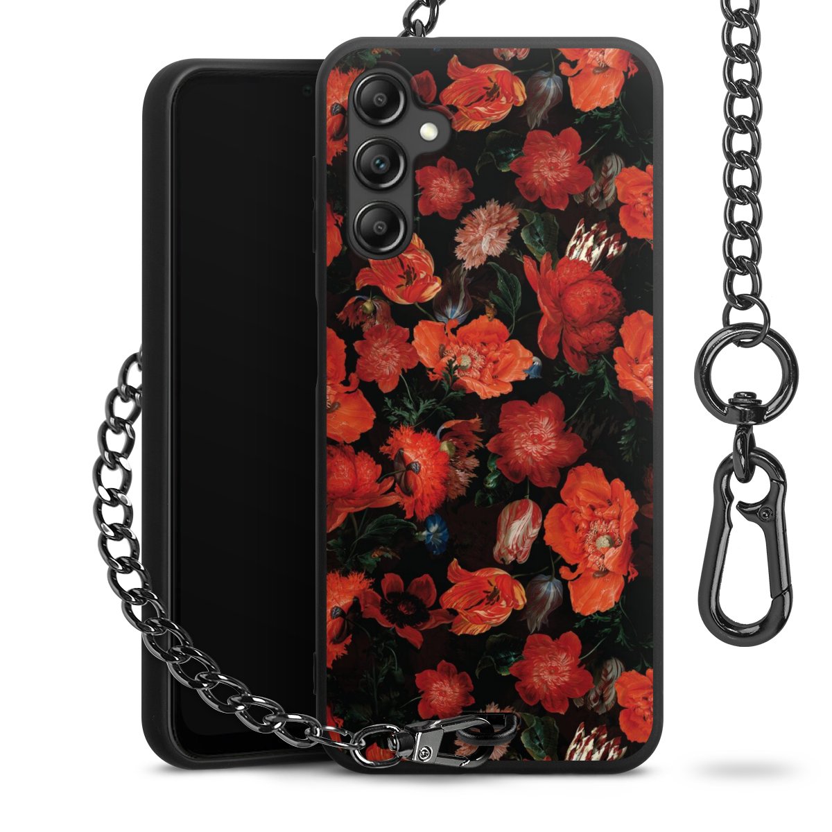 • Mattschwarze Handyhülle mit Metallkette