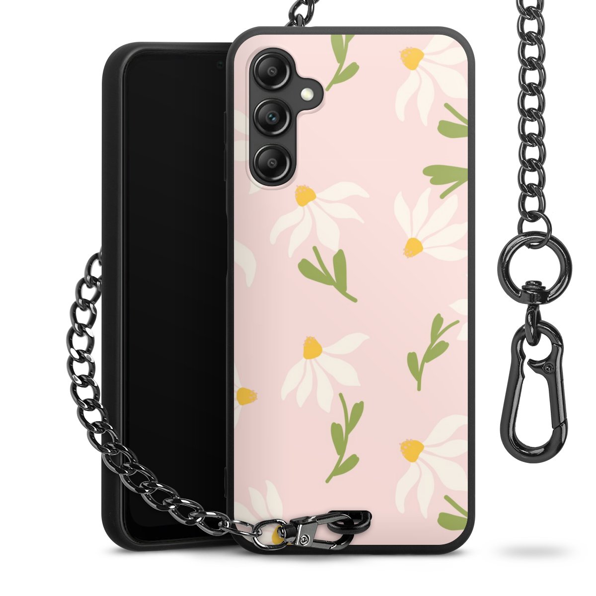 • Mattschwarze Handyhülle mit Metallkette