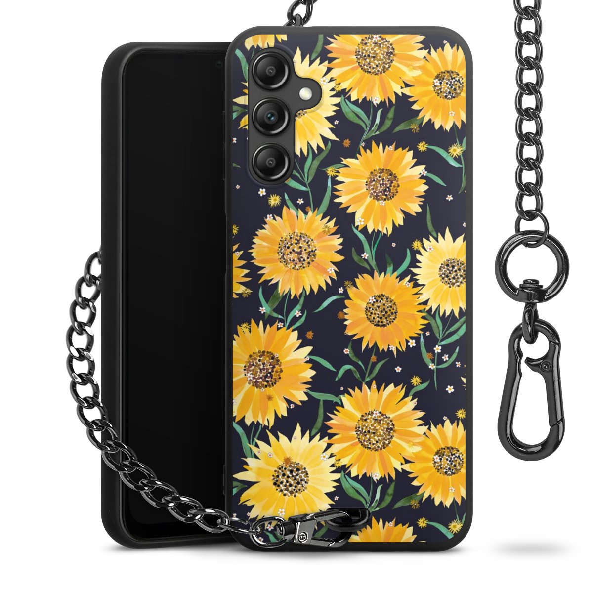 • Mattschwarze Handyhülle mit Metallkette