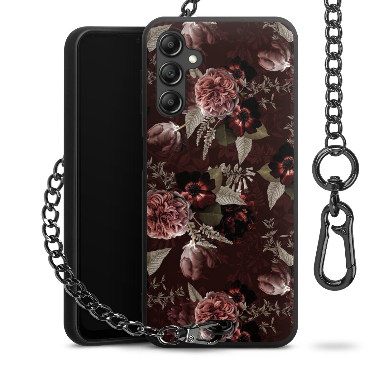 • Mattschwarze Handyhülle mit Metallkette