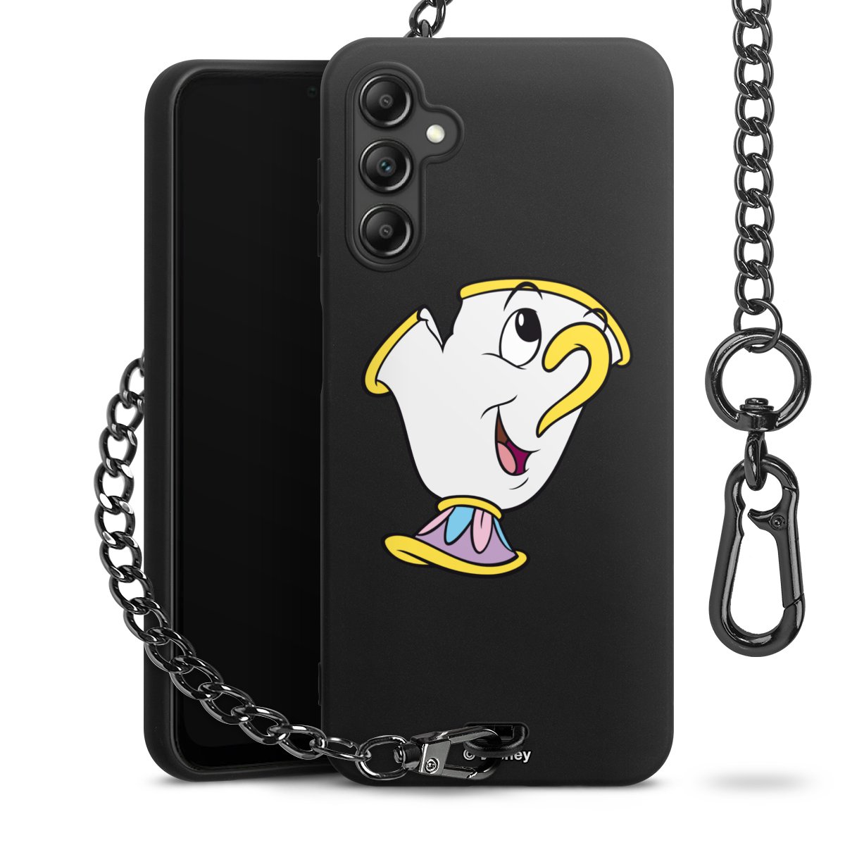 • Mattschwarze Handyhülle mit Metallkette