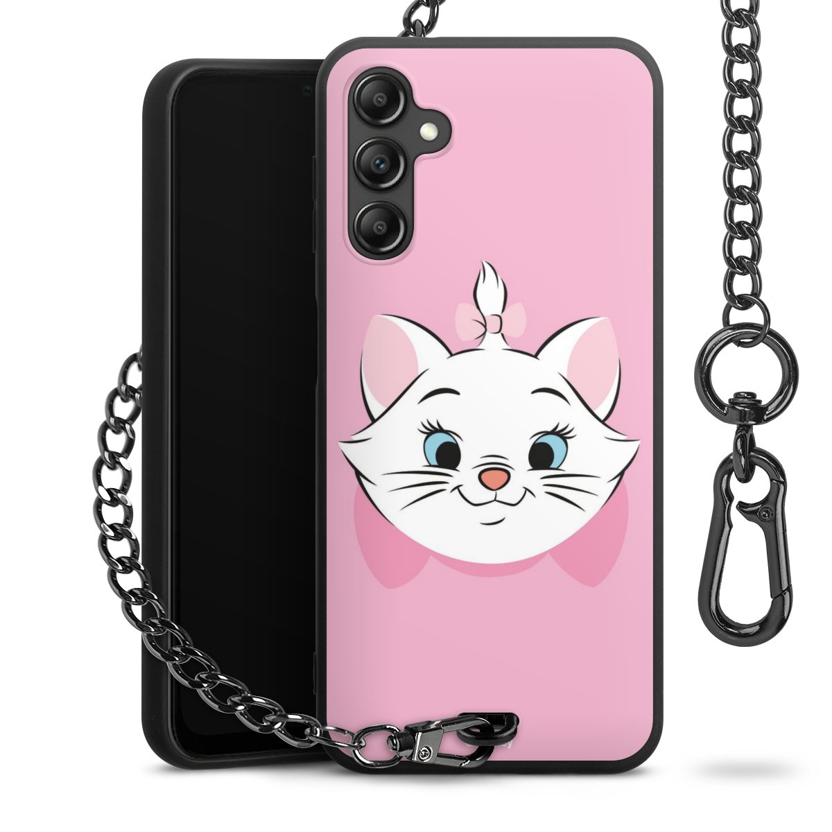 • Mattschwarze Handyhülle mit Metallkette