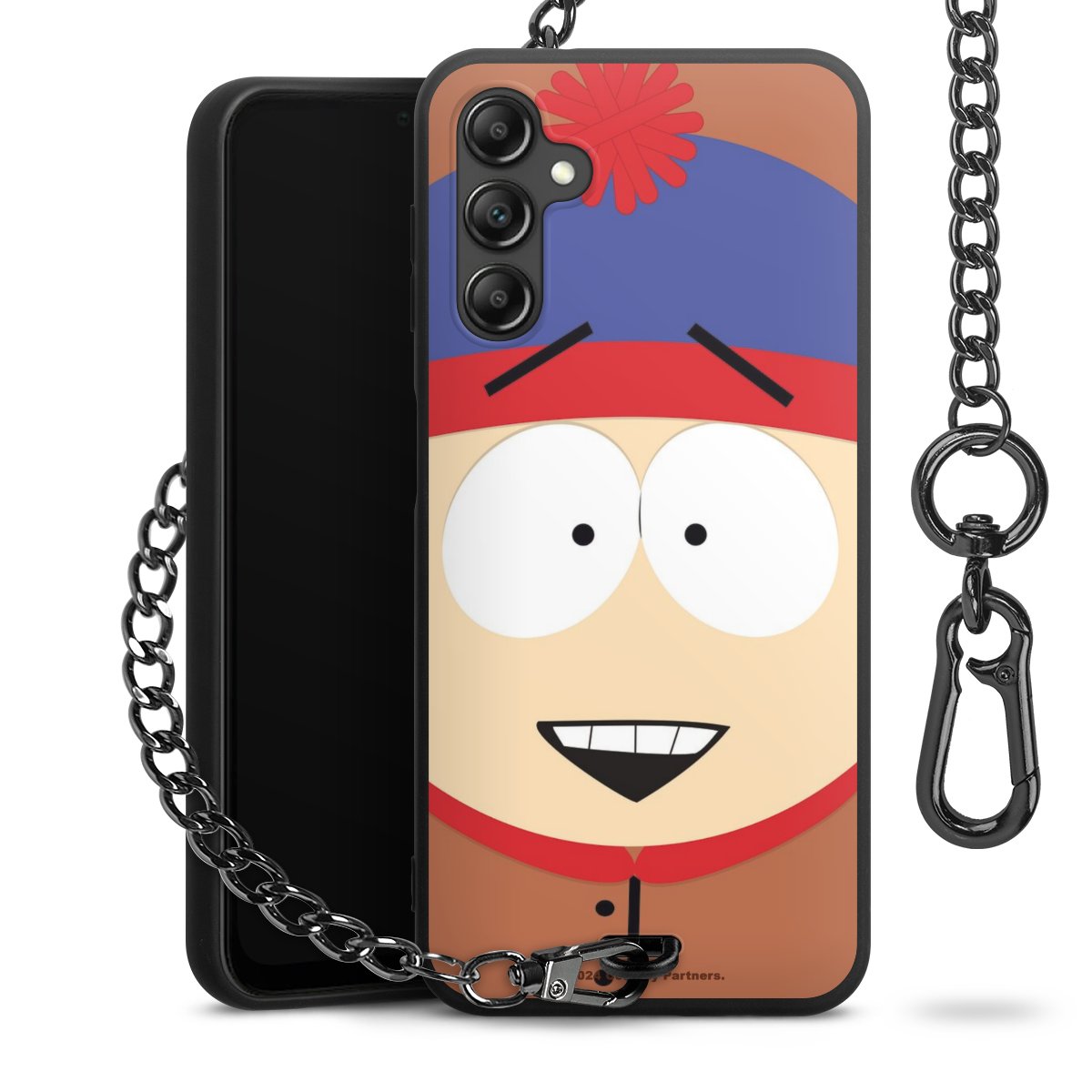 - Mattschwarze Handyhülle mit Metallkette