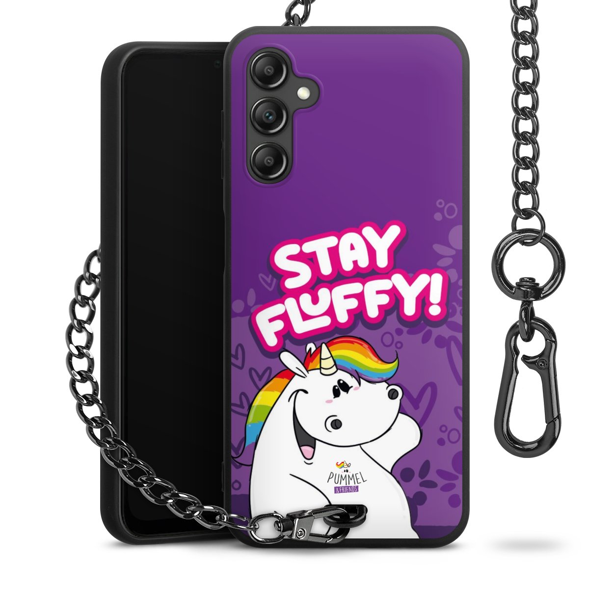 Die mattschwarze Silikon-Handyhülle besteht aus robustem TPU (thermoplastisches Polyurethan). Sie ist flexibel und schützt Dein Smartphone vor Stößen und Kratzern. Die Kette sowie der Karabinerhaken sind aus Metall in Gunmetal-Optik gefertigt. Für dieses Produkt kommen ausschließlich TÜV-geprüfte Materialien zum Einsatz.
