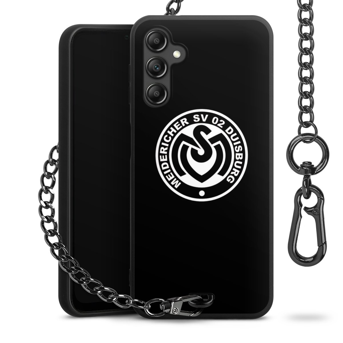 • Mattschwarze Handyhülle mit Metallkette