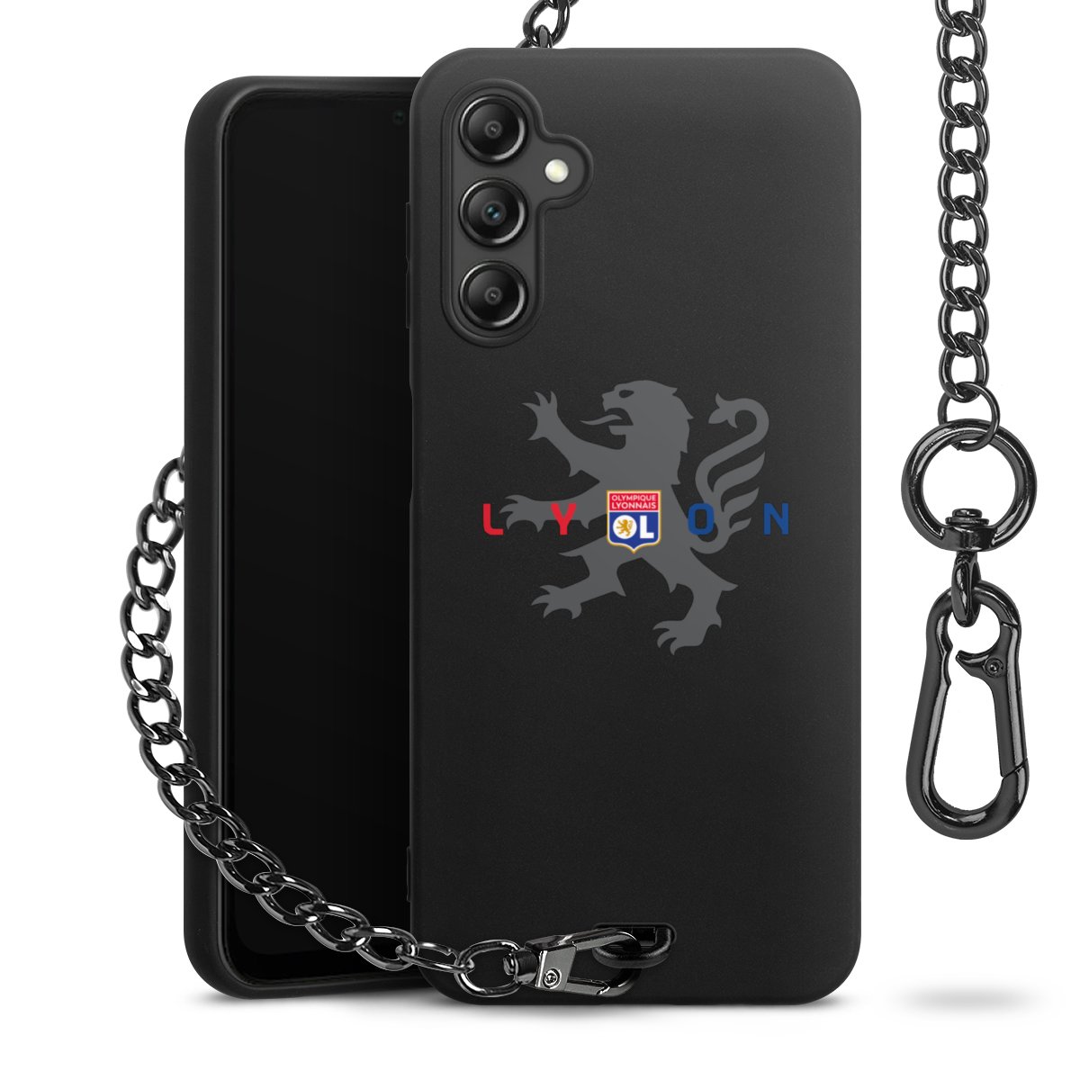 • Mattschwarze Handyhülle mit Metallkette