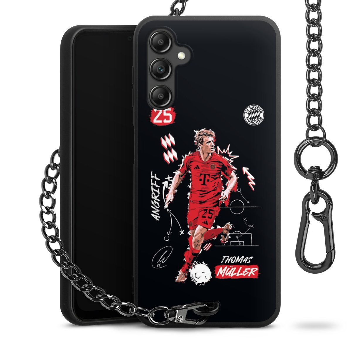 • Mattschwarze Handyhülle mit Metallkette