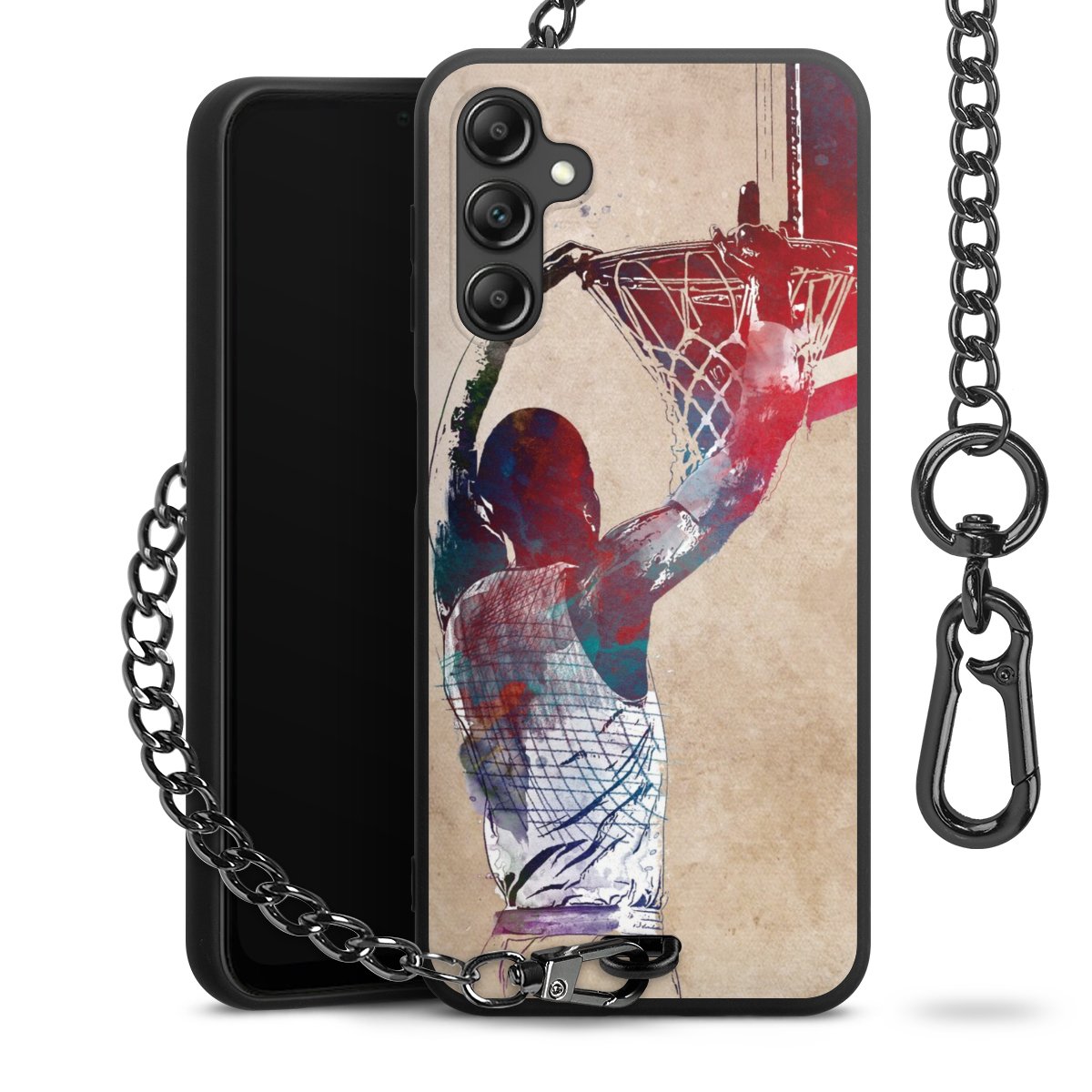 • Mattschwarze Handyhülle mit Metallkette