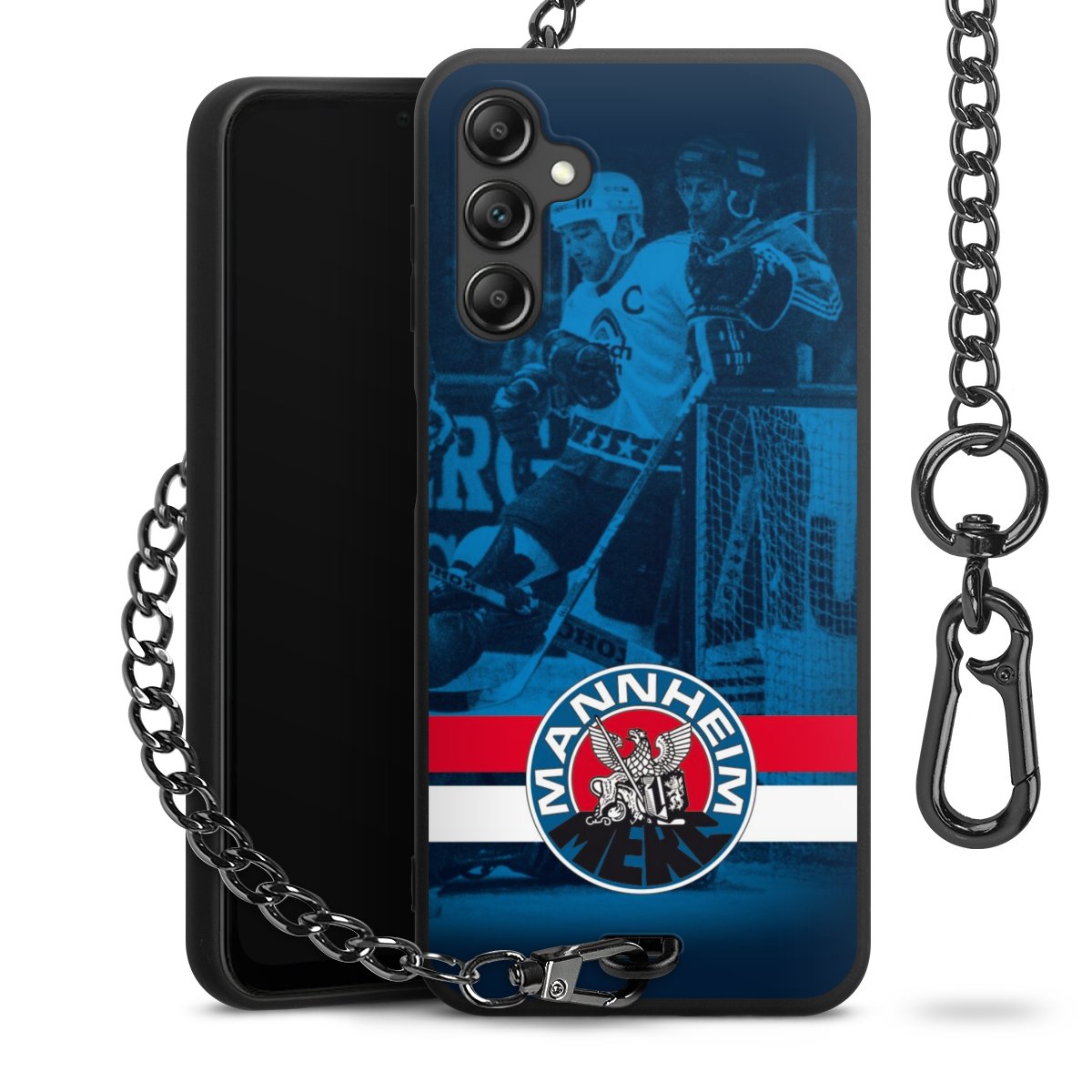 • Mattschwarze Handyhülle mit Metallkette