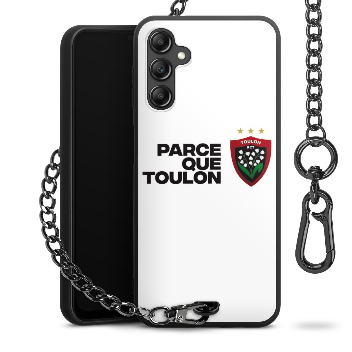 - Mattschwarze Handyhülle mit Metallkette