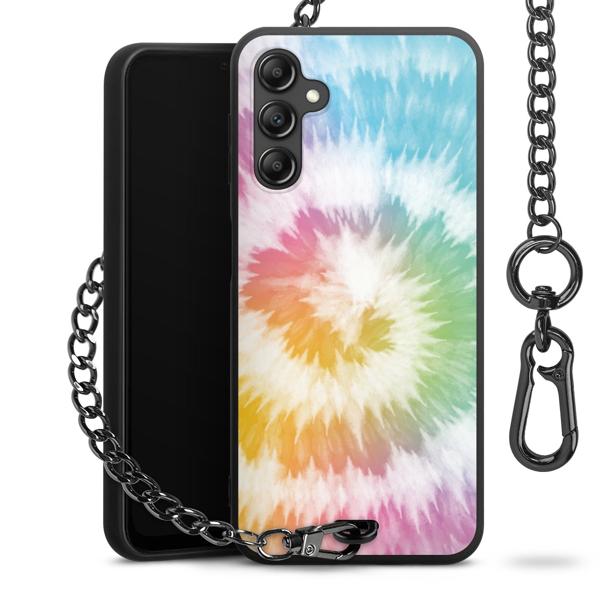 - Mattschwarze Handyhülle mit Metallkette