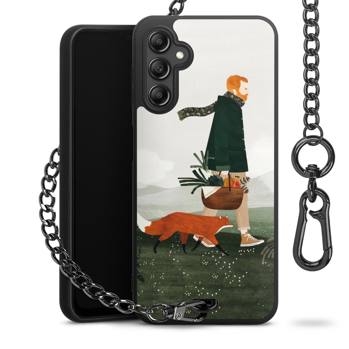 - Mattschwarze Handyhülle mit Metallkette