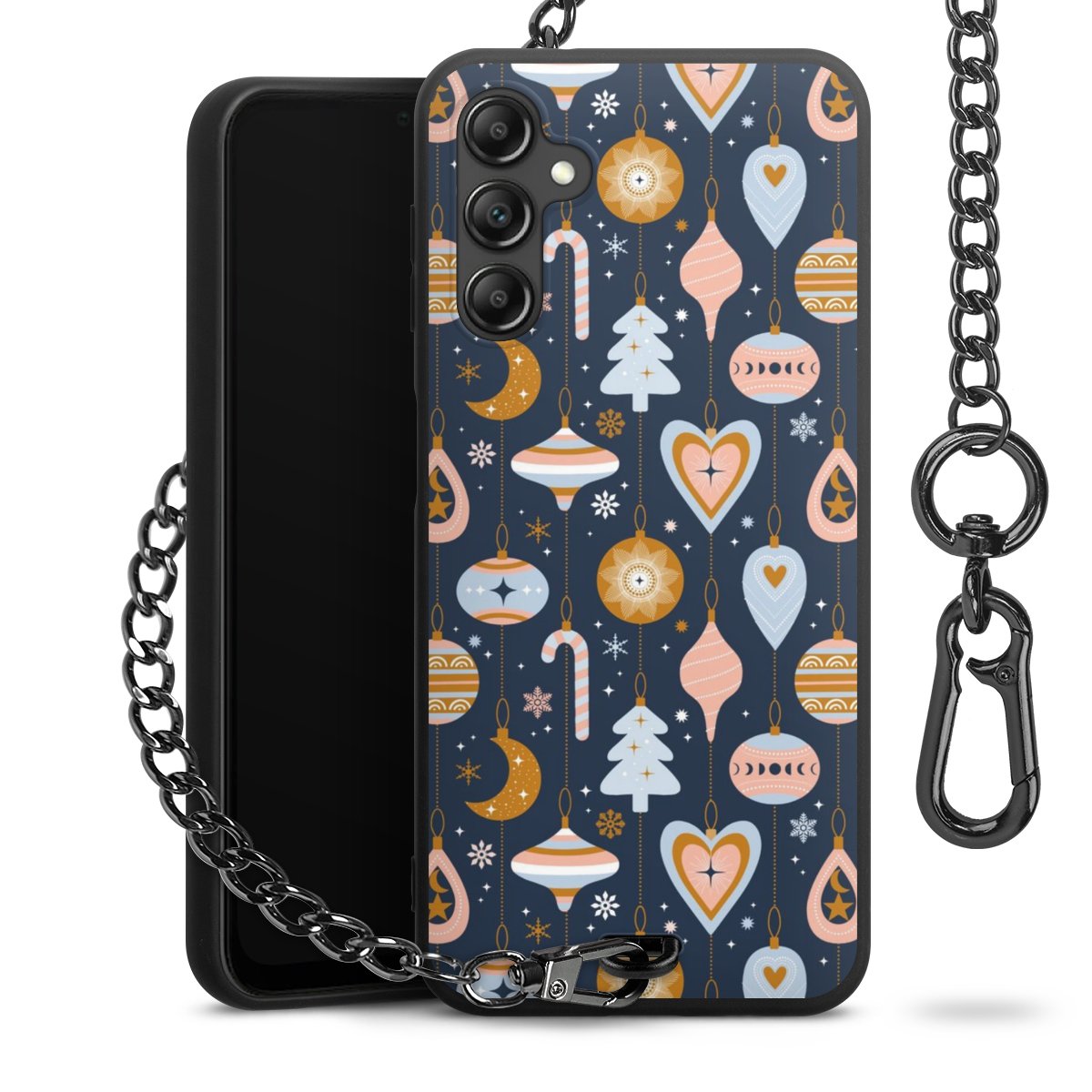 • Mattschwarze Handyhülle mit Metallkette