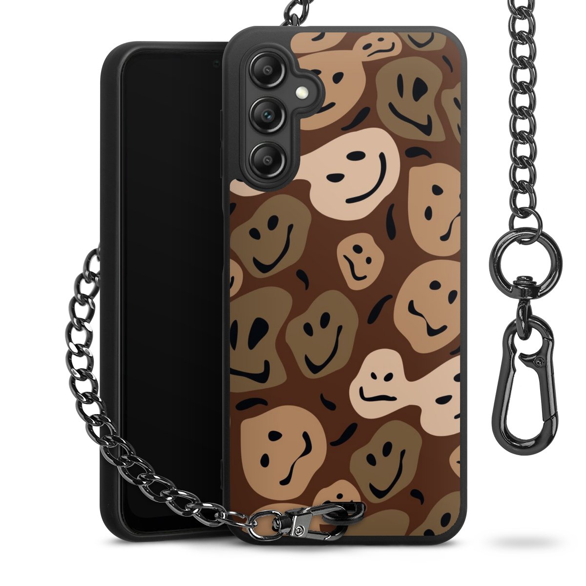 - Mattschwarze Handyhülle mit Metallkette