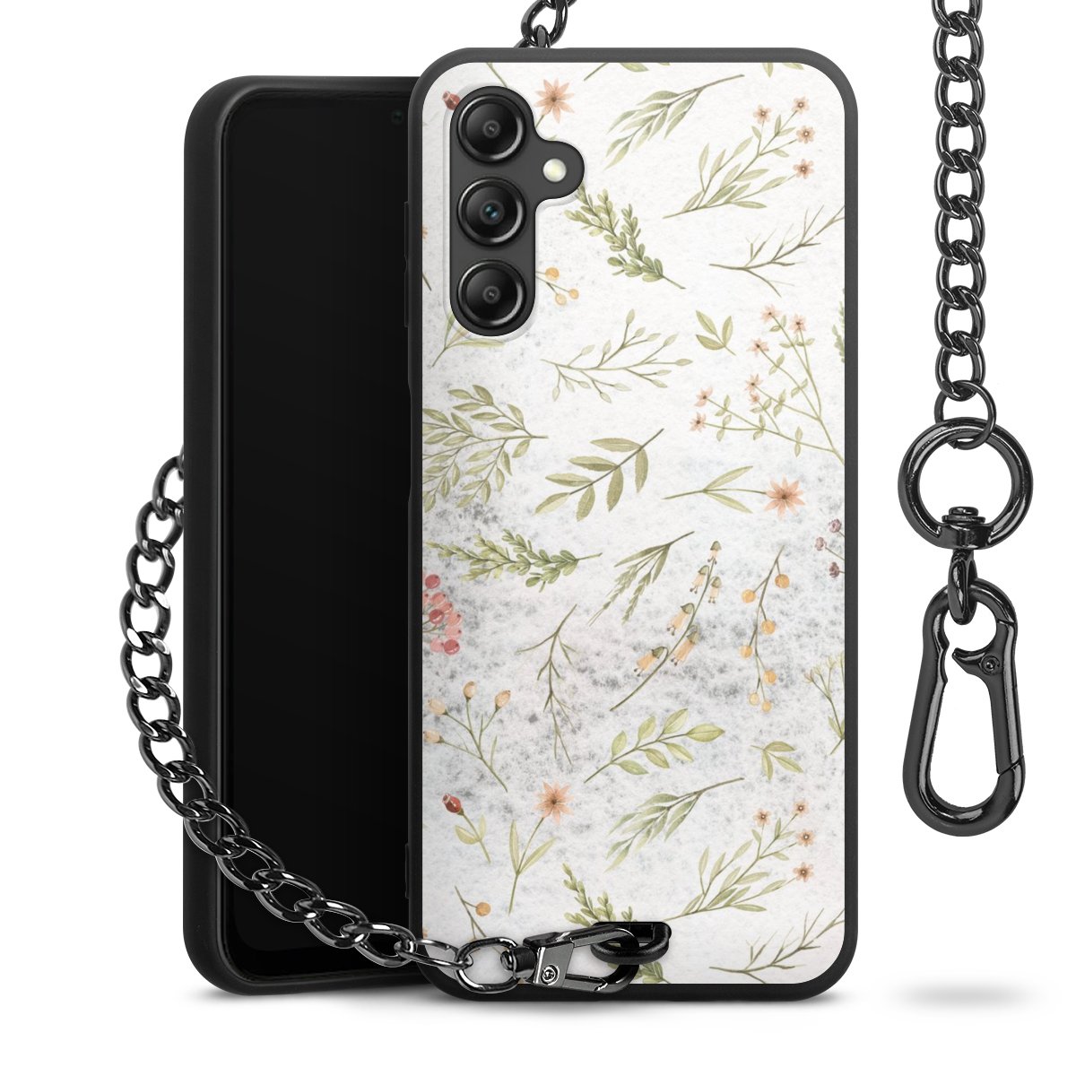- Mattschwarze Handyhülle mit Metallkette