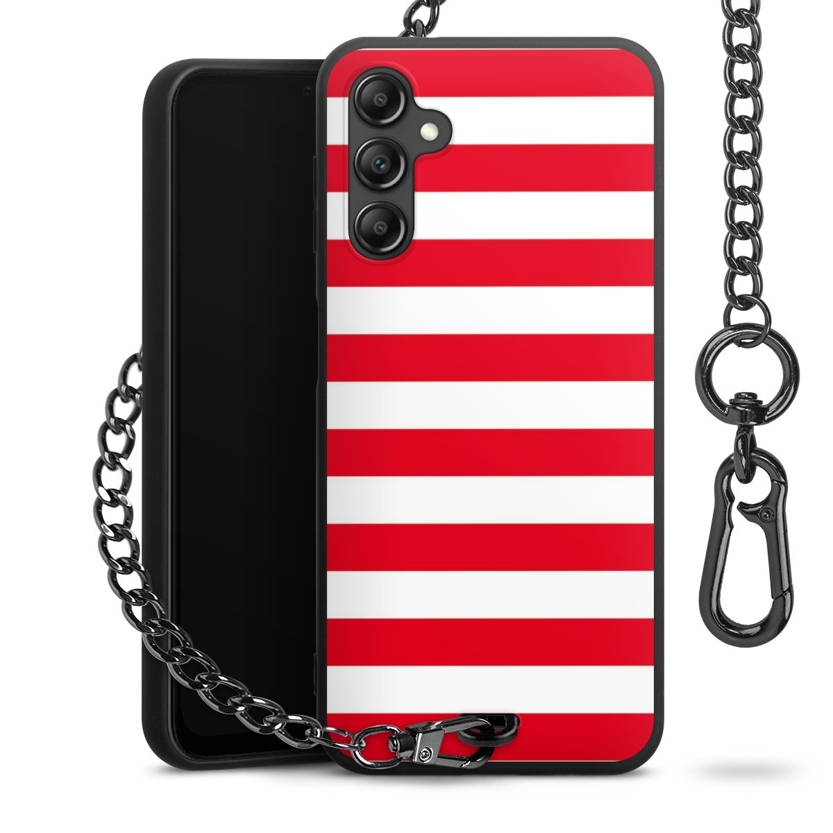 Die mattschwarze Silikon-Handyhülle besteht aus robustem TPU (thermoplastisches Polyurethan). Sie ist flexibel und schützt Dein Smartphone vor Stößen und Kratzern. Die Kette sowie der Karabinerhaken sind aus Metall in Gunmetal-Optik gefertigt. Für dieses Produkt kommen ausschließlich TÜV-geprüfte Materialien zum Einsatz.