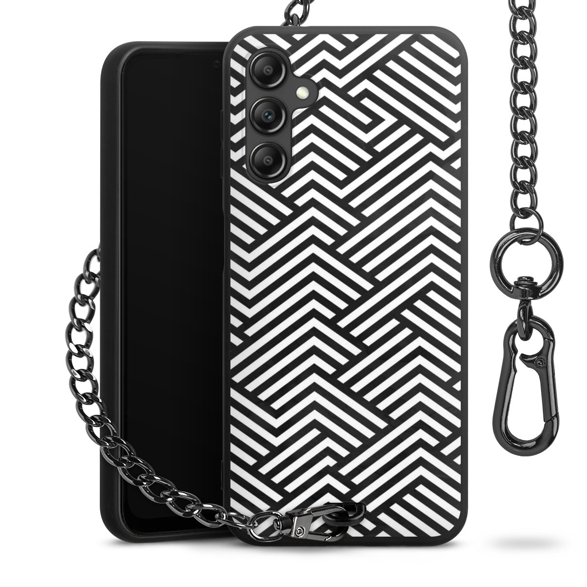• Mattschwarze Handyhülle mit Metallkette