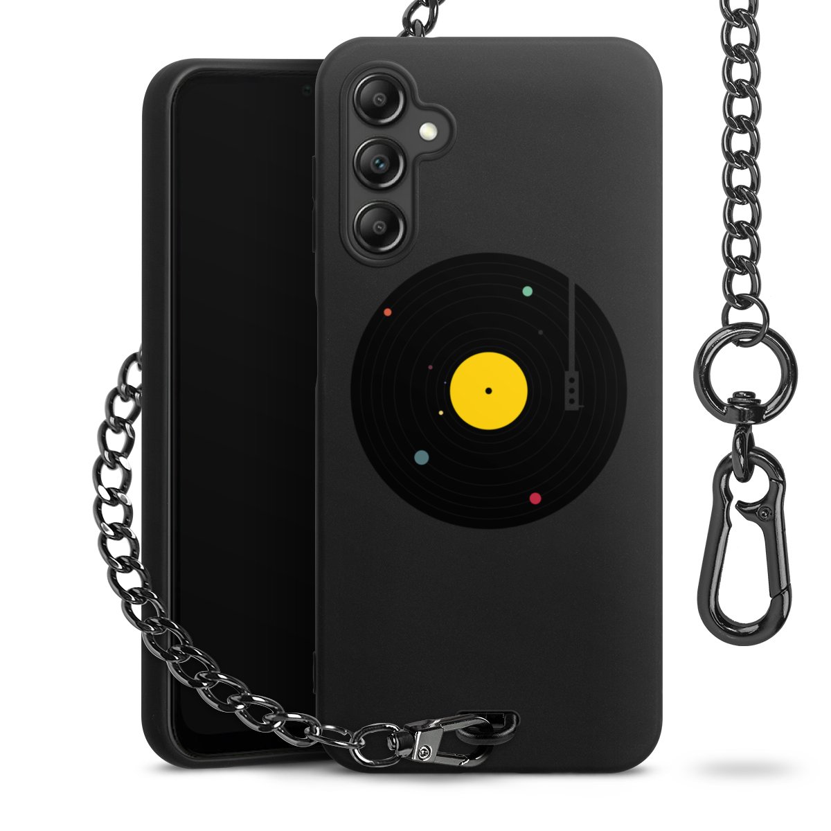 • Mattschwarze Handyhülle mit Metallkette