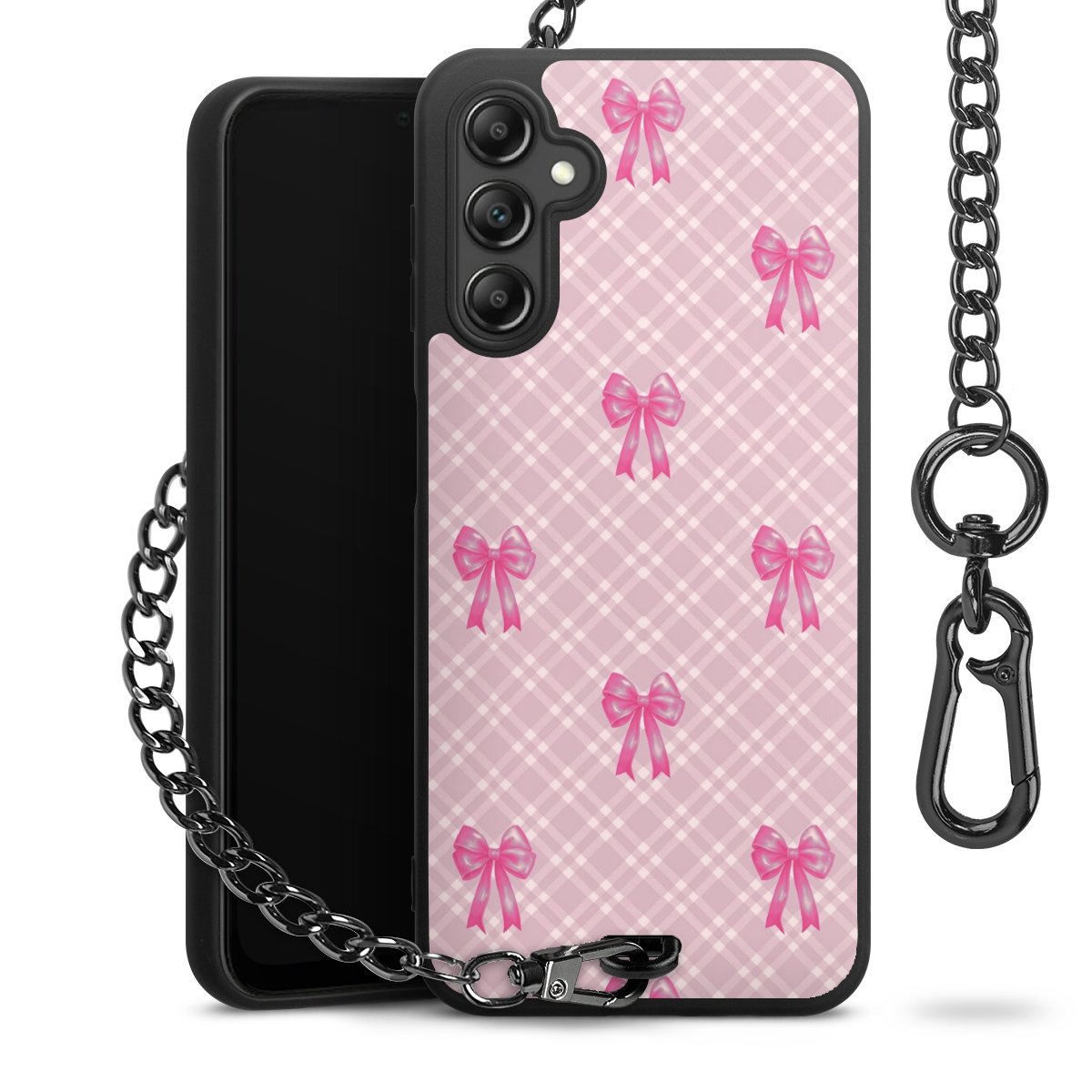 • Mattschwarze Handyhülle mit Metallkette