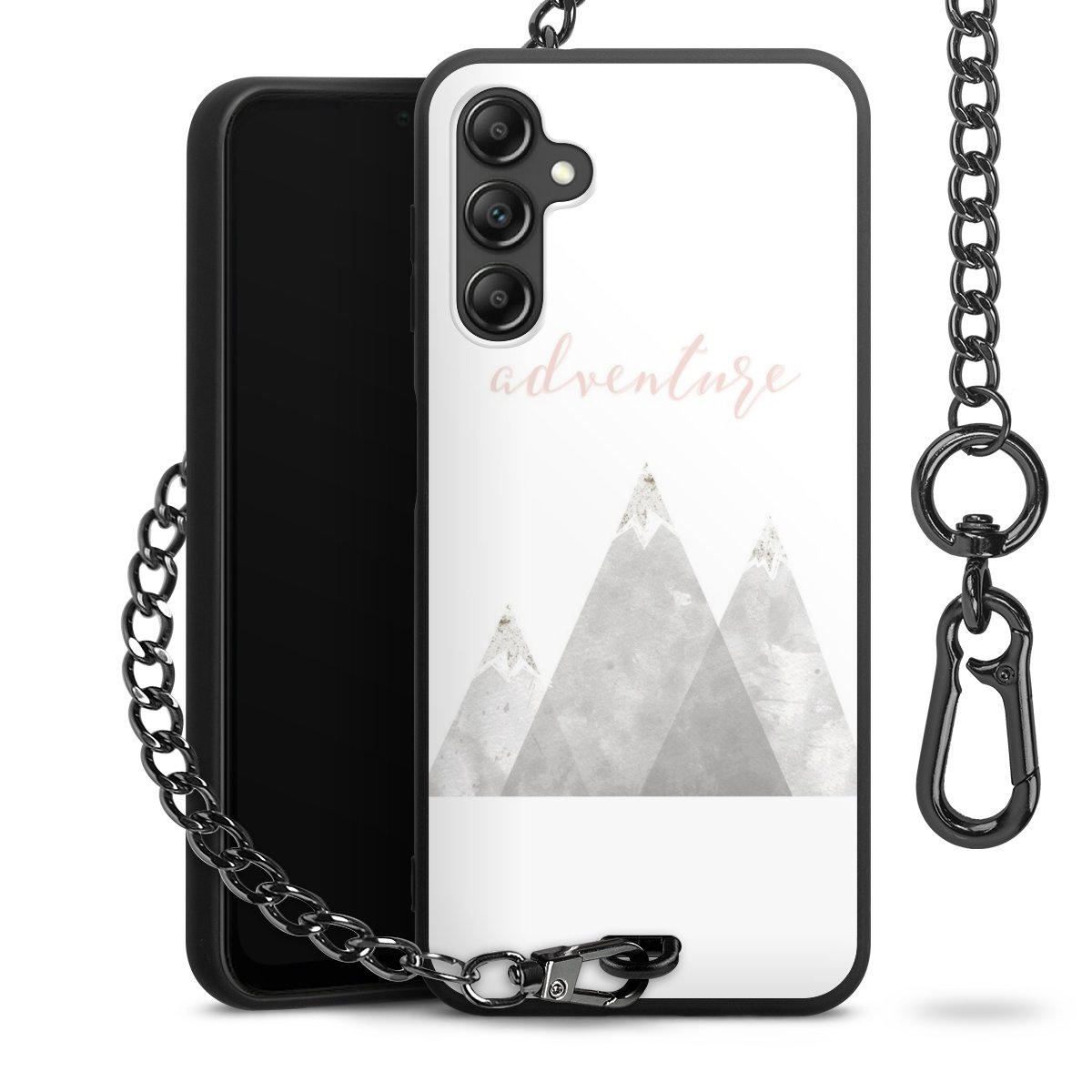 • Mattschwarze Handyhülle mit Metallkette