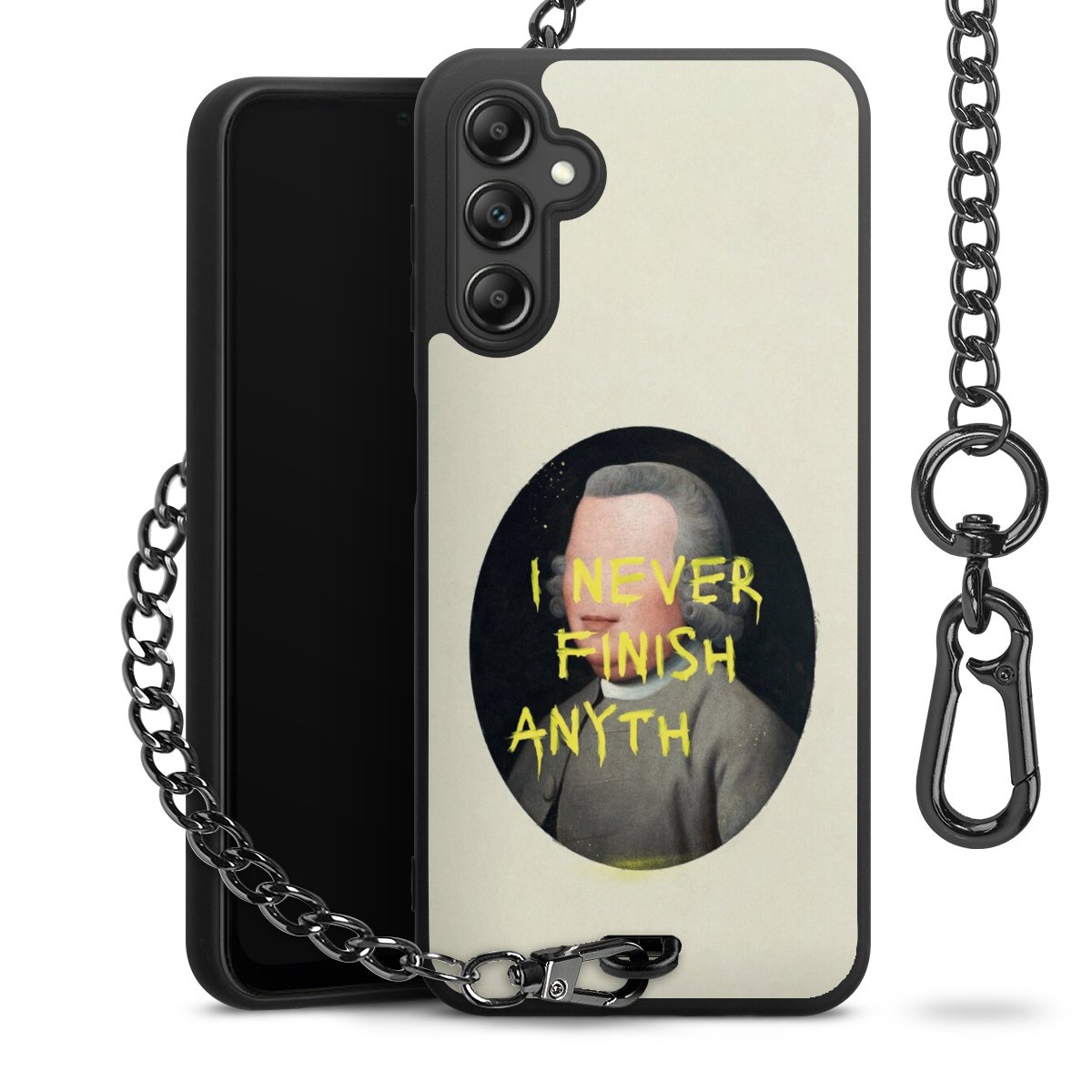 • Mattschwarze Handyhülle mit Metallkette