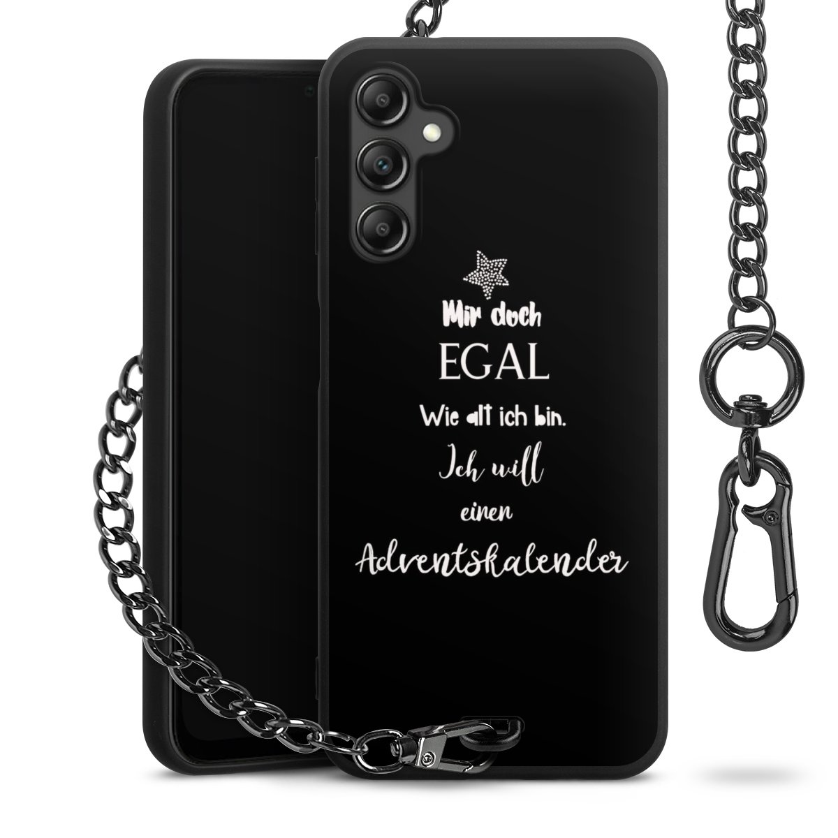 • Mattschwarze Handyhülle mit Metallkette