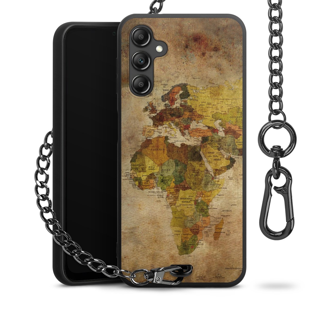 - Mattschwarze Handyhülle mit Metallkette