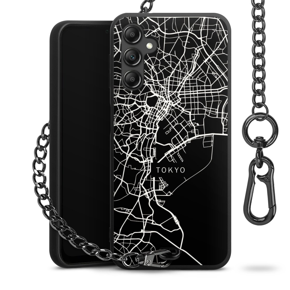 - Mattschwarze Handyhülle mit Metallkette