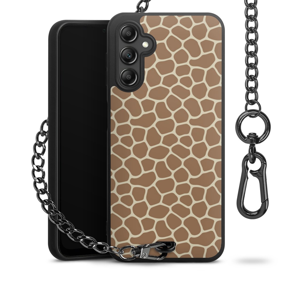 - Mattschwarze Handyhülle mit Metallkette
