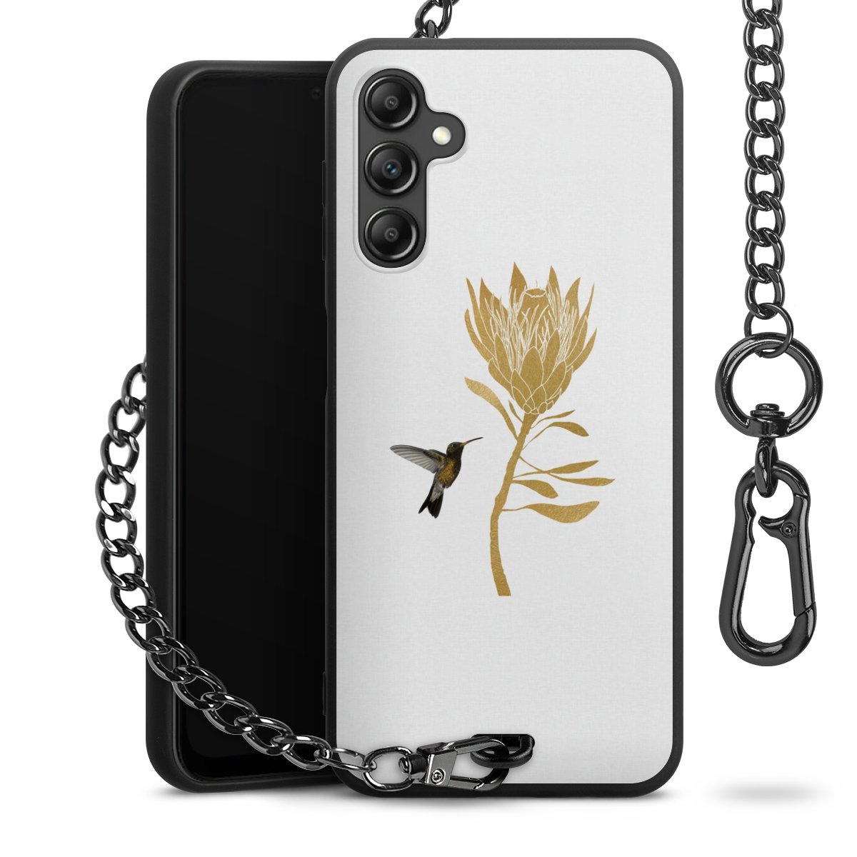 • Mattschwarze Handyhülle mit Metallkette