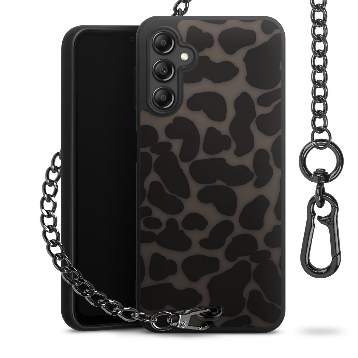 • Mattschwarze Handyhülle mit Metallkette