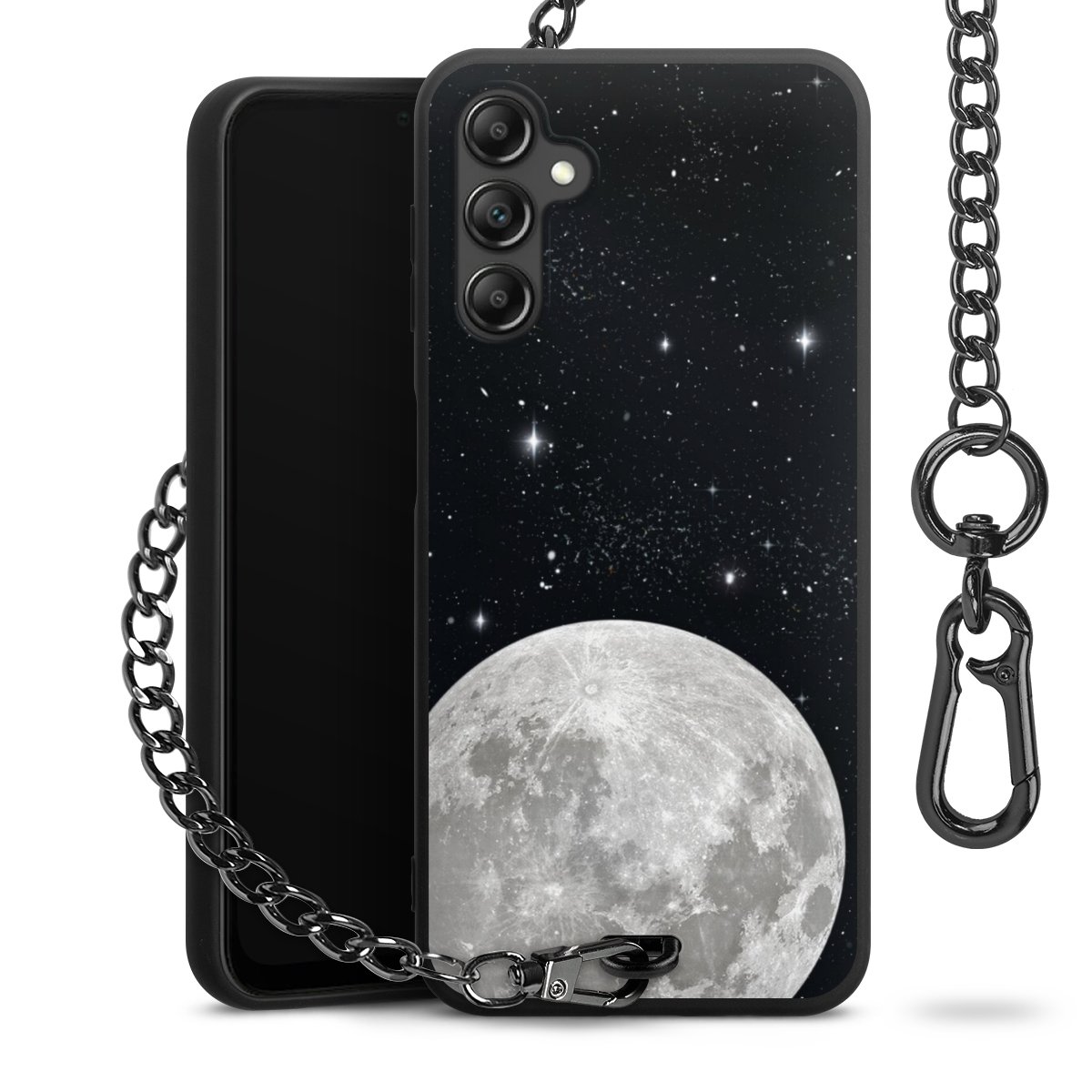 • Mattschwarze Handyhülle mit Metallkette