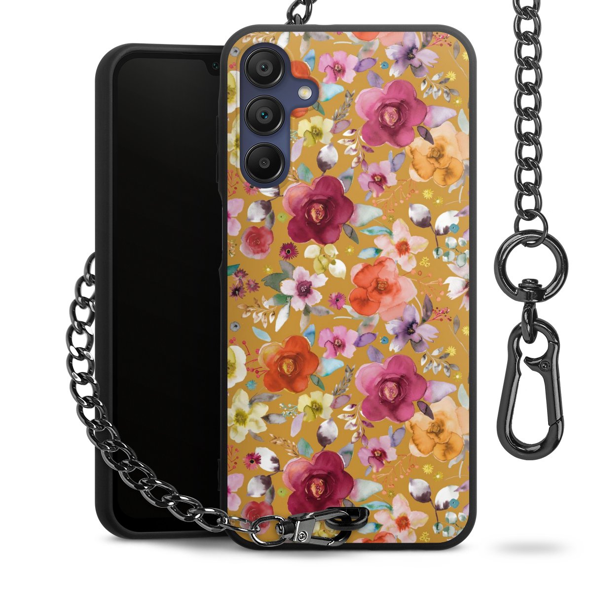 • Mattschwarze Handyhülle mit Metallkette
