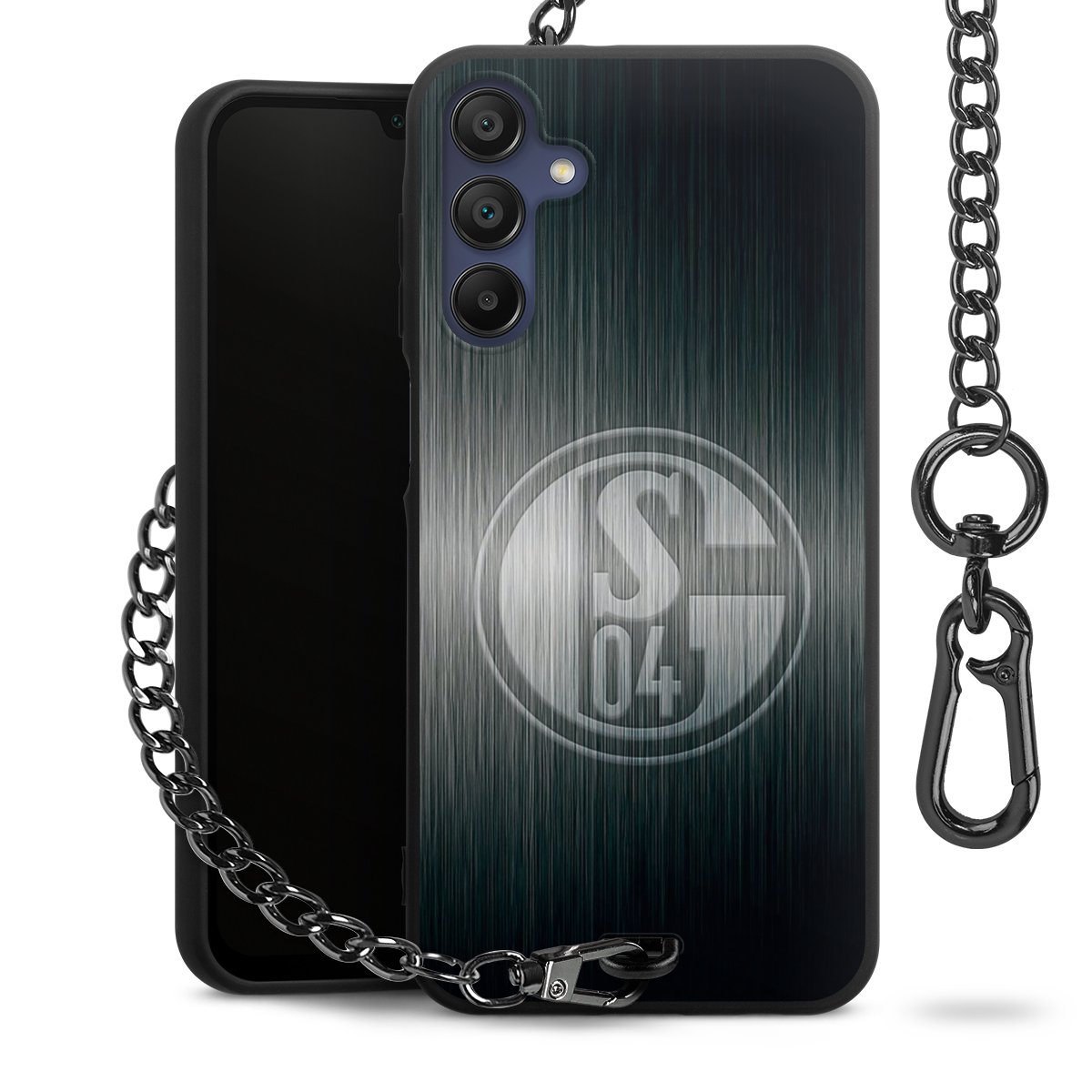 • Mattschwarze Handyhülle mit Metallkette