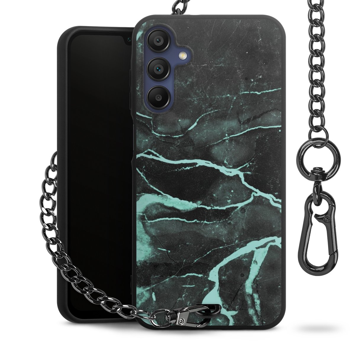 • Mattschwarze Handyhülle mit Metallkette
