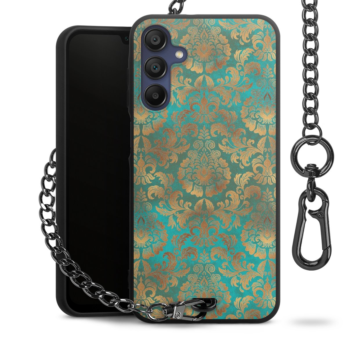 • Mattschwarze Handyhülle mit Metallkette