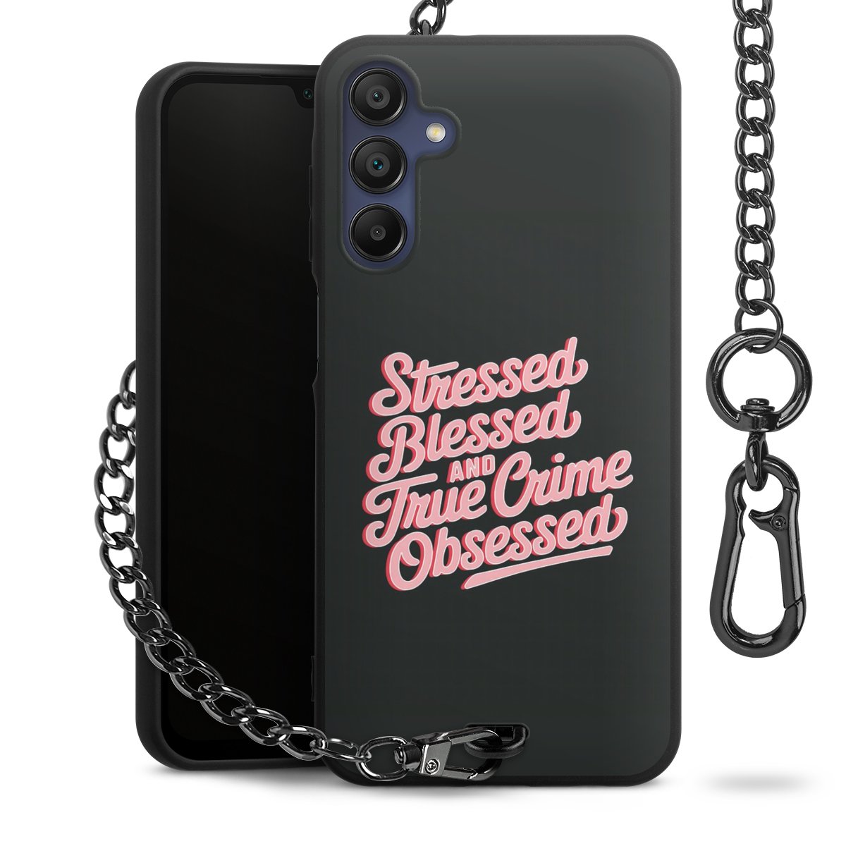 • Mattschwarze Handyhülle mit Metallkette