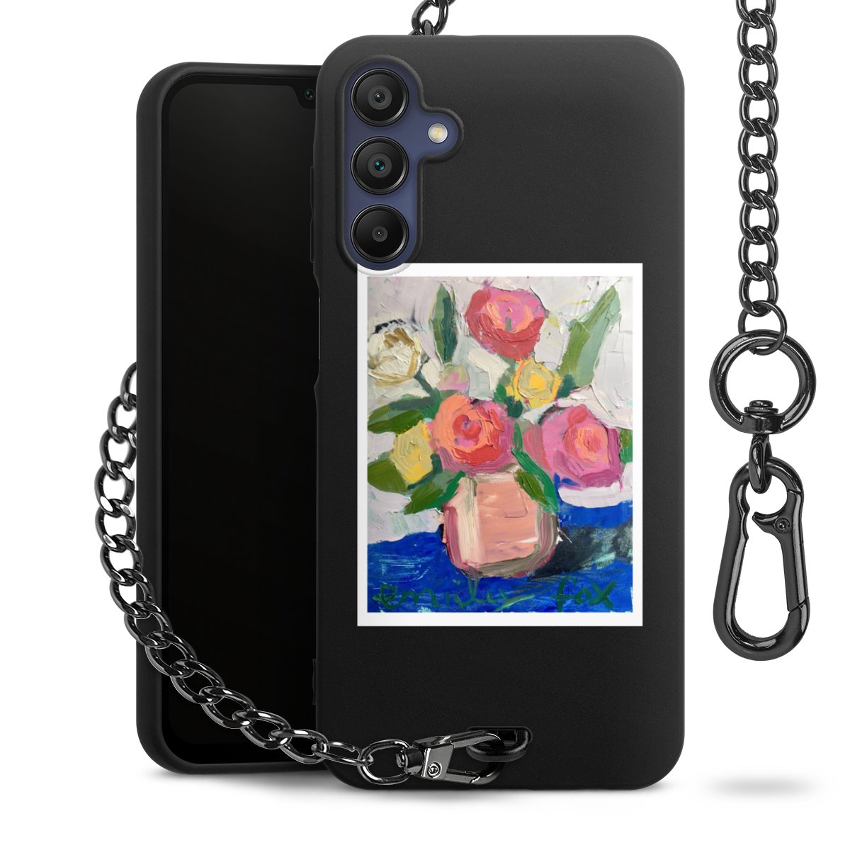 • Mattschwarze Handyhülle mit Metallkette