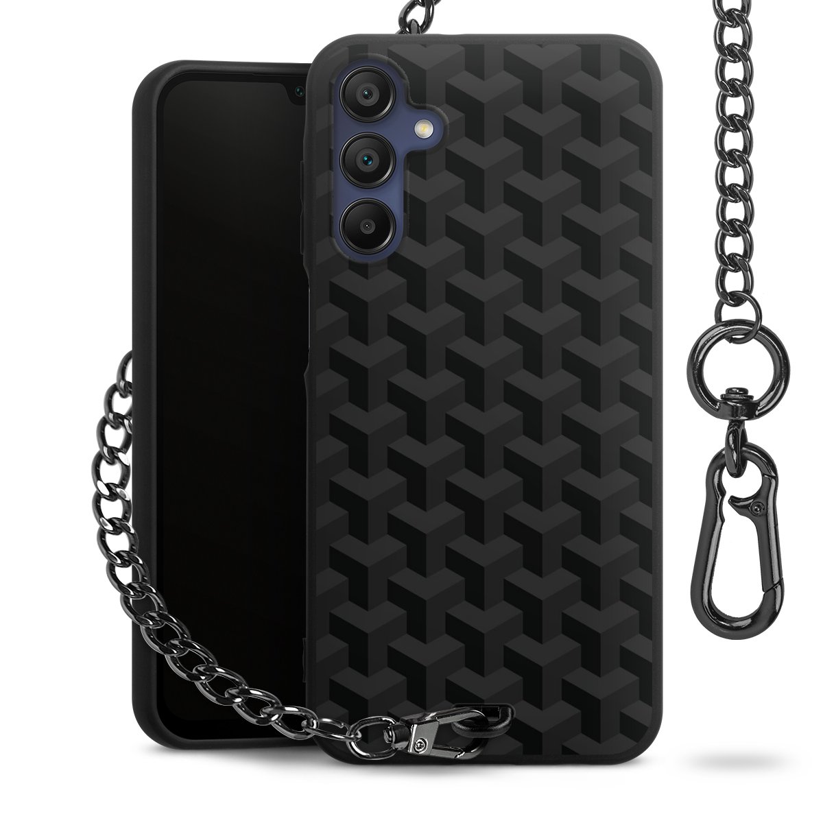 - Mattschwarze Handyhülle mit Metallkette