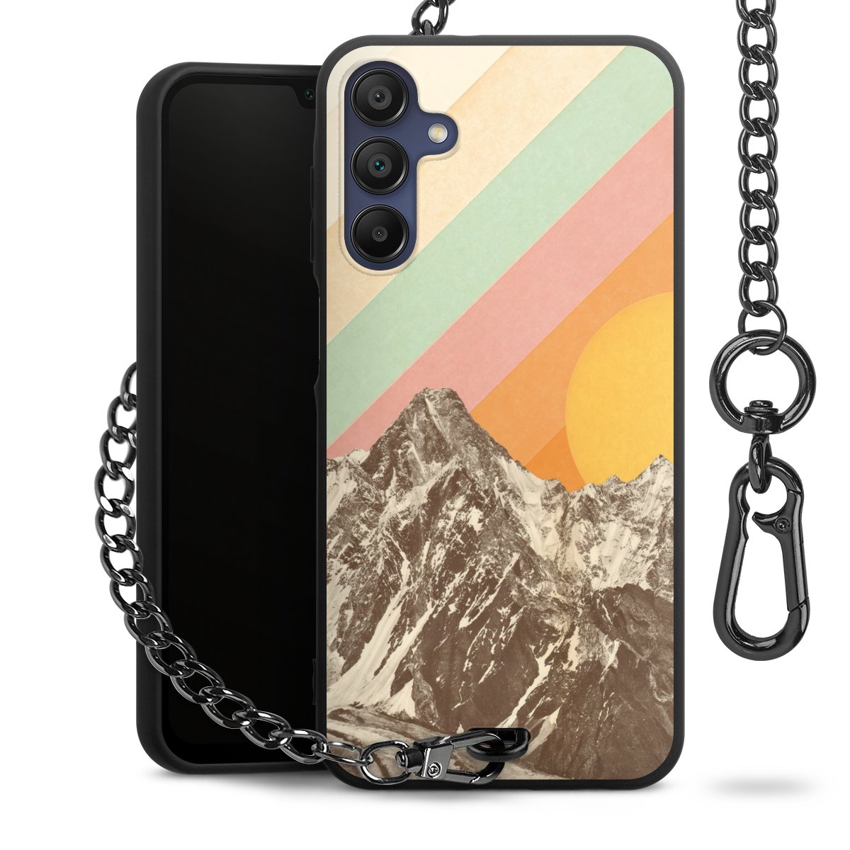 • Mattschwarze Handyhülle mit Metallkette