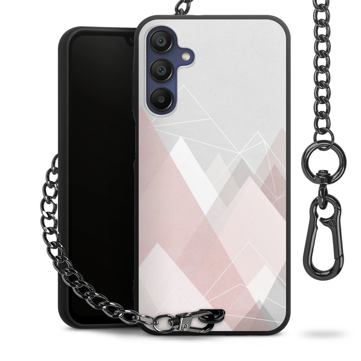 • Mattschwarze Handyhülle mit Metallkette