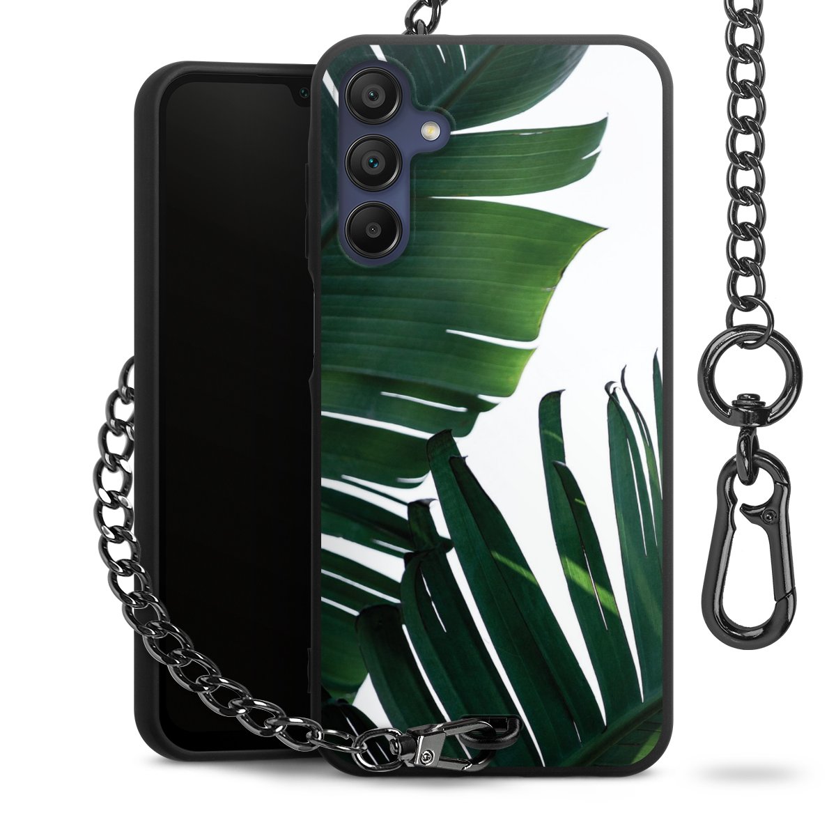 • Mattschwarze Handyhülle mit Metallkette