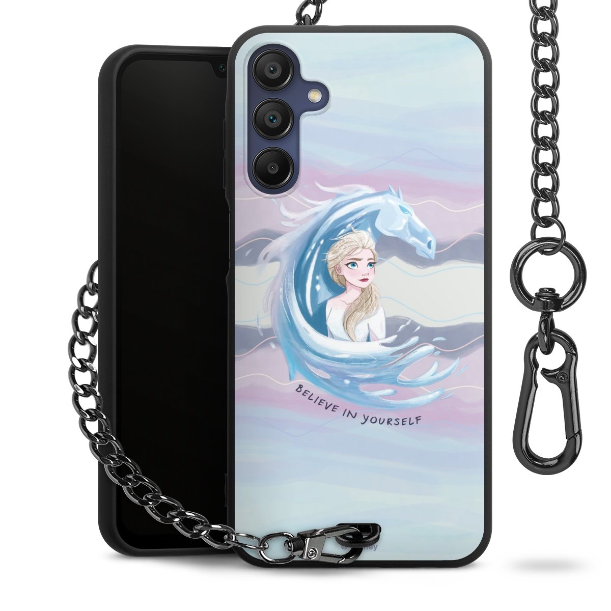 • Mattschwarze Handyhülle mit Metallkette