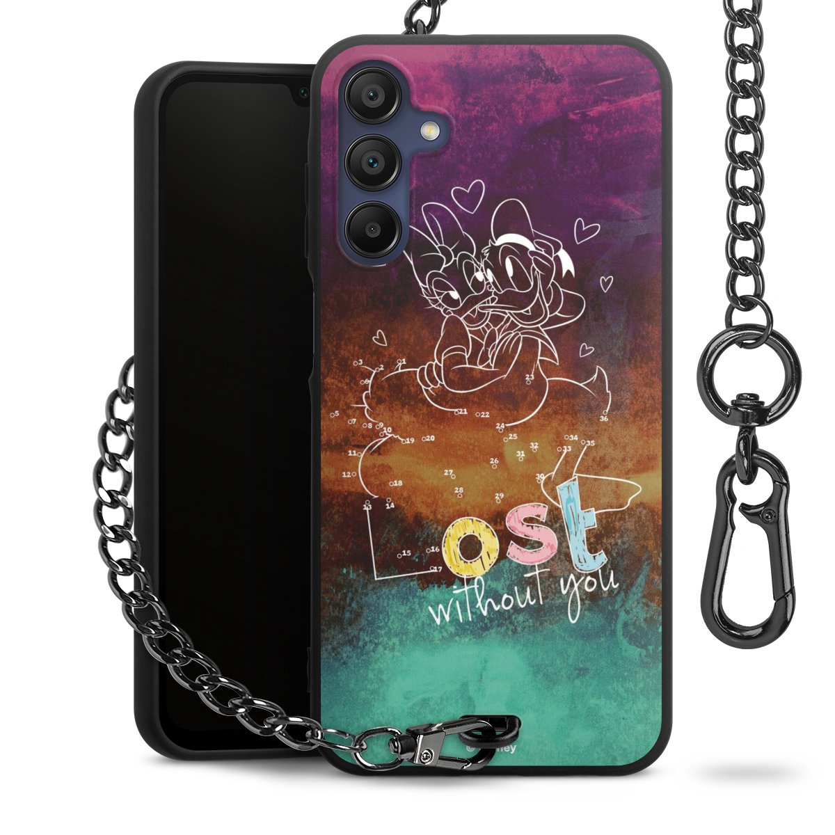Die mattschwarze Silikon-Handyhülle besteht aus robustem TPU (thermoplastisches Polyurethan). Sie ist flexibel und schützt Dein Smartphone vor Stößen und Kratzern. Die Kette sowie der Karabinerhaken sind aus Metall in Gunmetal-Optik gefertigt. Für dieses Produkt kommen ausschließlich TÜV-geprüfte Materialien zum Einsatz.