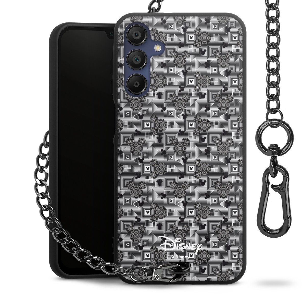 • Mattschwarze Handyhülle mit Metallkette