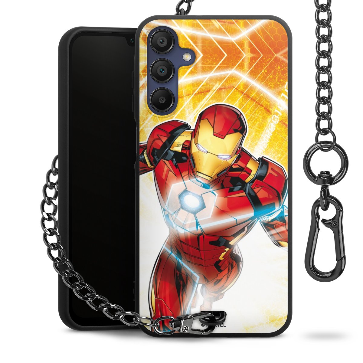 • Mattschwarze Handyhülle mit Metallkette