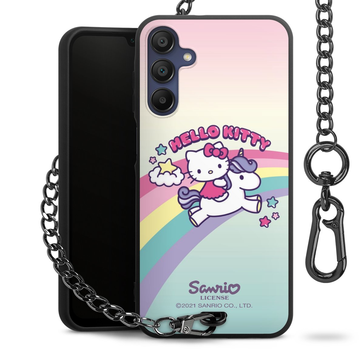 Die mattschwarze Silikon-Handyhülle besteht aus robustem TPU (thermoplastisches Polyurethan). Sie ist flexibel und schützt Dein Smartphone vor Stößen und Kratzern. Die Kette sowie der Karabinerhaken sind aus Metall in Gunmetal-Optik gefertigt. Für dieses Produkt kommen ausschließlich TÜV-geprüfte Materialien zum Einsatz.